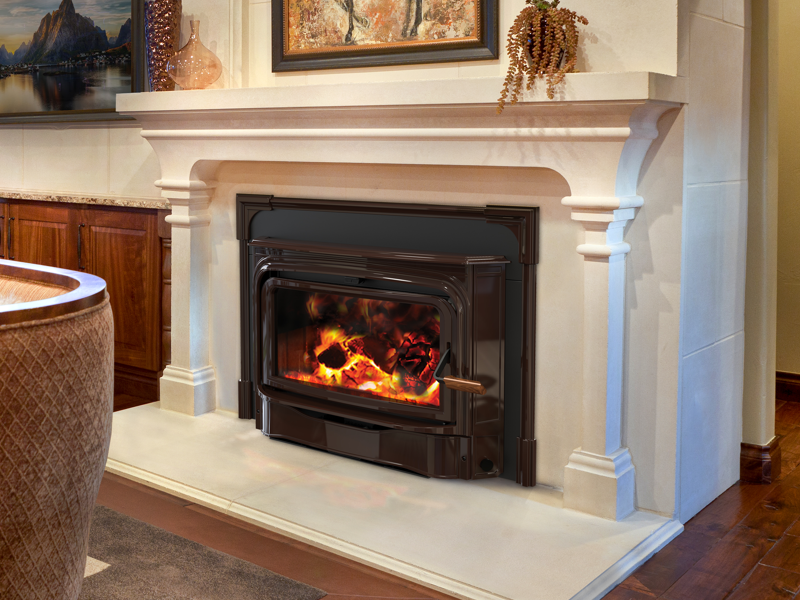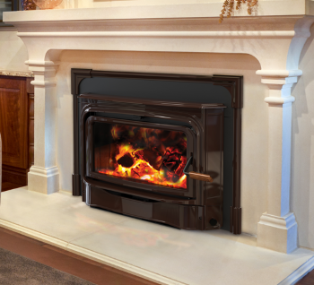 The Ashford 25 is a medium sized fireplace insert. At 2.3 cu. ft., the firebox will take up to a 22″ log and can deliver warmth for up to 25 hours on low. The Ashford 25 is very clean and efficient and can heat from 400 – 1,600 sq. ft. The door features a large, 24″ x 11″, wide-screen glass viewing area with a nickel plated and hand made olive-wood door handle. Attention to detail is evident from the layered surround panel to the unique control system that allows you to select the heat you want, and is featured in Metallic Black, Cast Grey and Chestnut Wood Enamel.