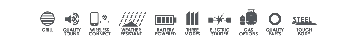• 3 Modes: Music | Grill | Music & Grill