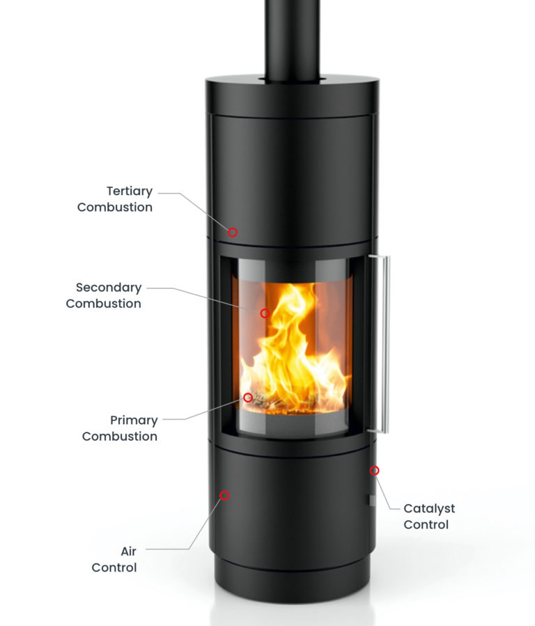 Our TruHybrid™ stoves burn cleanly and efficiently before and after you engage the catalyst. The system combines primary and secondary combustion with tertiary combustion using a catalyst to take care of any unburned smoke particles and gases.