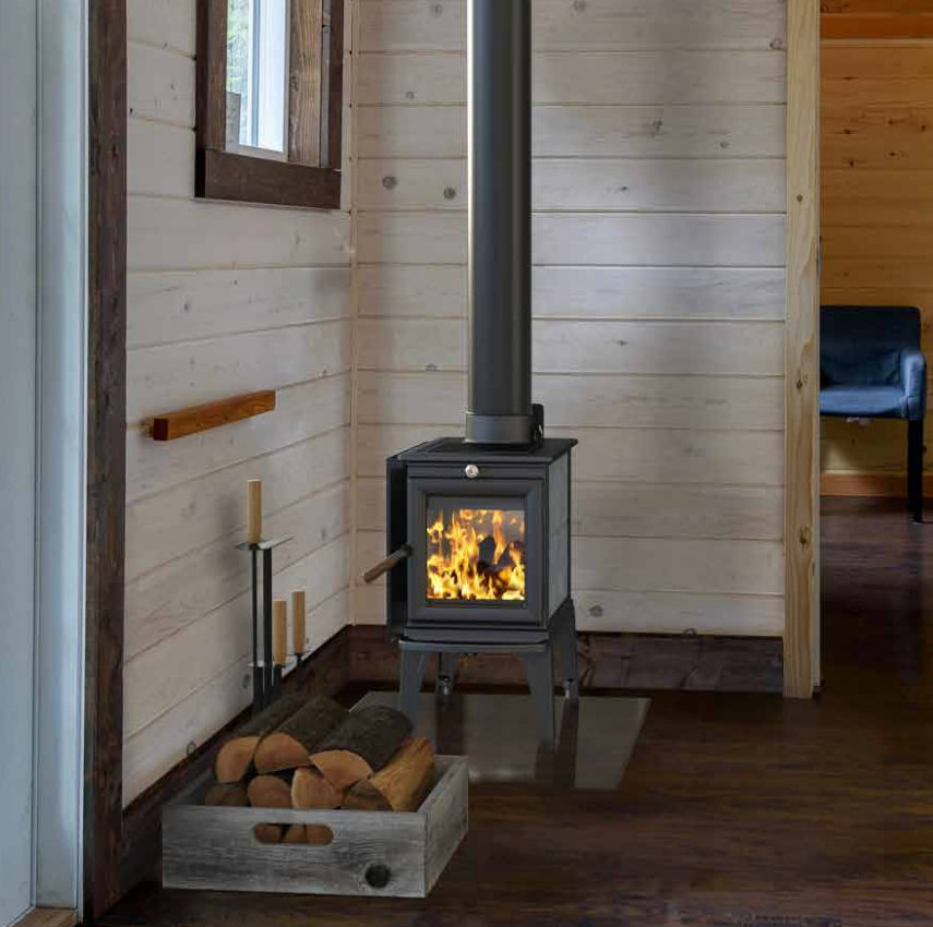 A HearthStone soapstone log burner designed for small spaces. The Lincoln was designed to be simple to use, easy to maintain, and sized for small living spaces. Designed as a traditional ‘log burner’, the Lincoln burns full size cord wood (we recommend 16″), but fits in tight spaces. It’s perfect for cabins, accessory dwelling units, or smaller rooms within you home. Optional heat shields can be added to either side and the back of the stove so it can be tucked tightly into corners taking up less space. The square plate on the top of the stove is finished with our food grade enamel, so it’s easy to heat things up and clean up any spills. The catalyst slides back to engage once the fire is hot. The slide system helps you remember to engage the catalyst for a clean burn. And, with the cook plate removed, you have easy access to check and clean the system.