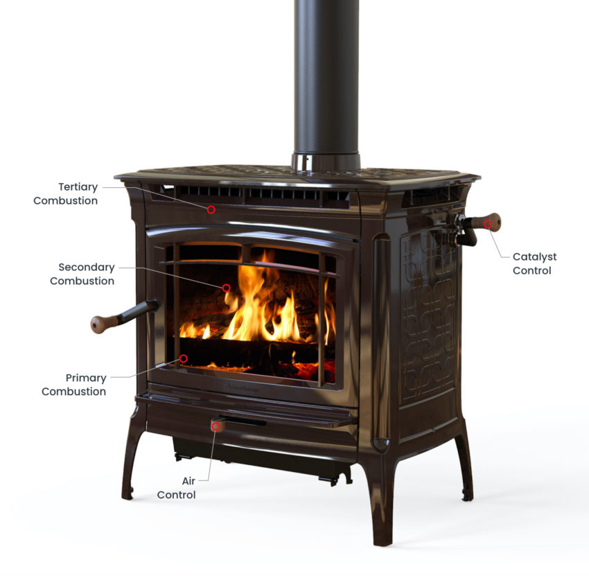 Enjoy a full, roaring fire with strong heat or use the single lever air control, conveniently located on the front of the stove, to adjust the flame to enjoy lower heat and gorgeous glowing embers. The choice is yours!