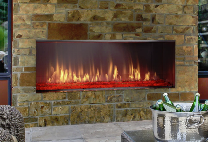The success of the Regency Horizon series can now be extended to outdoor living areas. All of the sophisticated, contemporary styling and quality workmanship is mirrored in this dramatic outdoor fireplace. This fireplace delivers beautiful wide angle flames amplified by a reflective stainless steel body with the choice of reflective crystals, volcanic stones or a ceramic drift wood log set. Quality, style and durable outdoor function make this fireplace a perfect outdoor option.