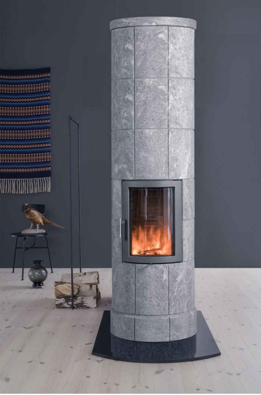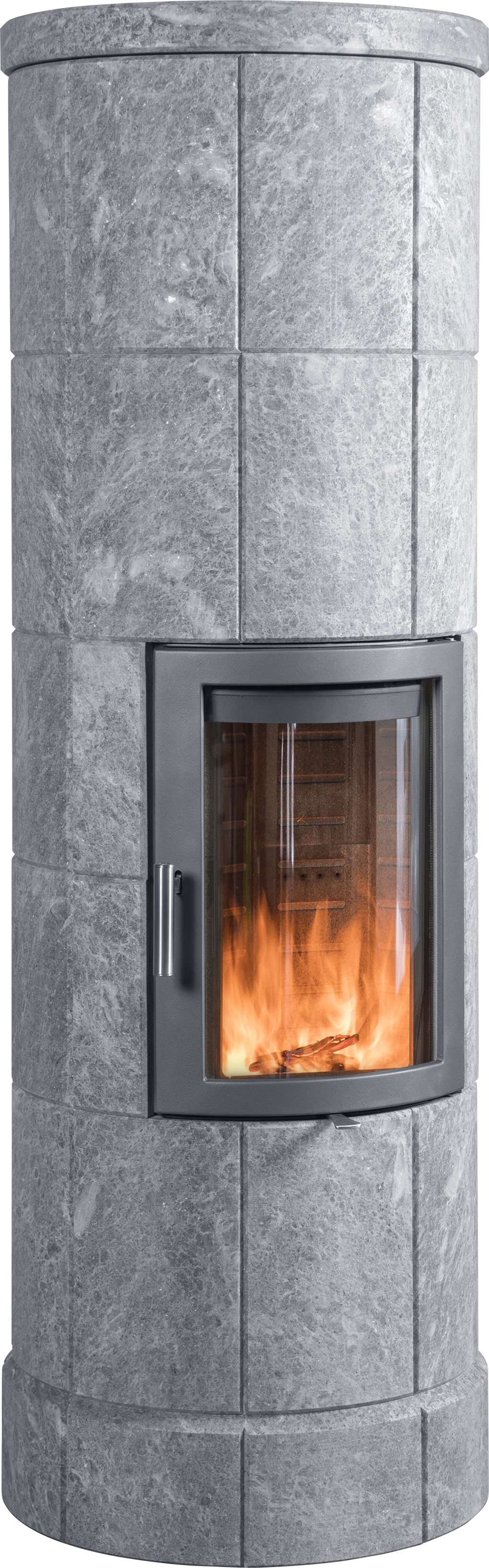 The Babina masonry heaters are classics, with their round, timeless shape that suits virtually any interior. The combination of 3-inch-thick stone and the direct conduction of the smoke to the stone means this stove has excellent heat storage properties. One load of wood alone gives 10 hours of pleasant heat. Due to its large heat storage, the wood stove can be fired several times in a row, giving a high output over many hours. The coziness of the flames and the radiating heat from a genuine soapstone stove create a sense of koselig.