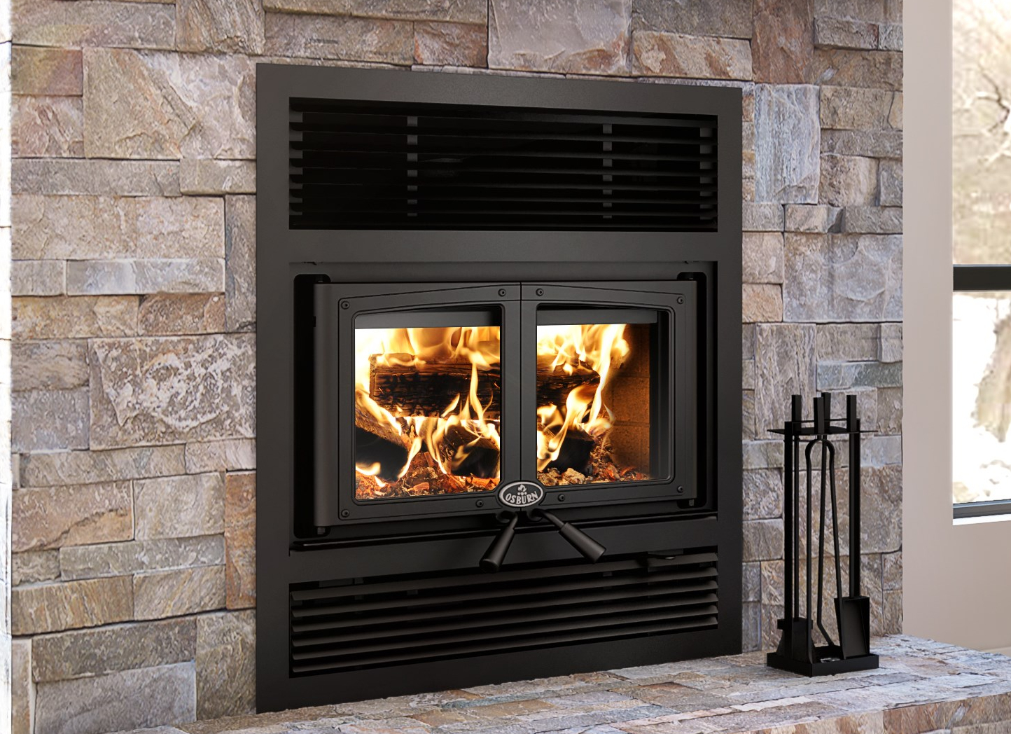 Made with care in Quebec, this easy-to-use non-catalytic wood fireplace has retractable cast iron double doors that you can enhance with a firescreen door to fully experience the crackle of the wood fire. A black or brushed nickel overlay is available for your convenience.