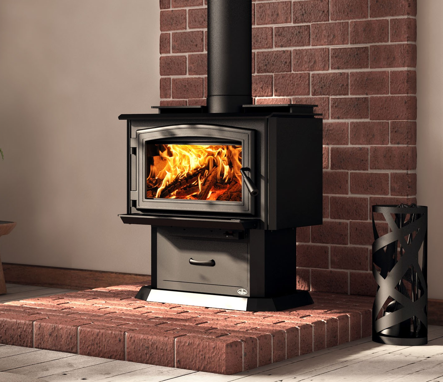Designed to meet the needs of smaller spaces, the Osburn 1700 combines robustness and elegance to allow you to enjoy your heating experience with confidence. This unit is equipped with high-density bricks, a stainless steel heat shield added to the C-Cast firestop, a cast iron door, a built-in ash pan, a top heat deflector that redirects heat to the front of the unit, and side panels to reduce its clearances.