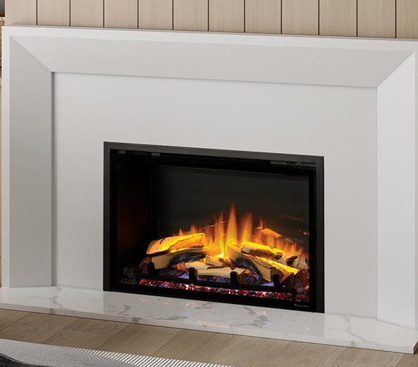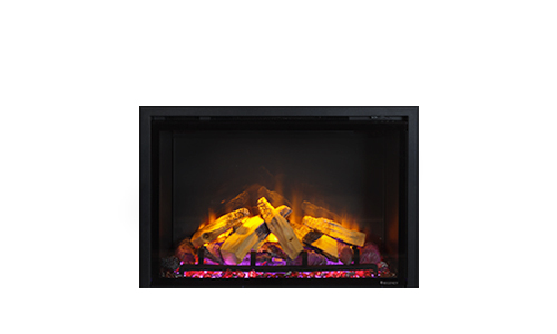 Flames so realistic, you won’t believe it’s electric! Designed to utilize similar stylized accessories as our popular gas insert lineup; customers can now get the look they want whether it’s gas, or electric. Featuring an unmatched and realistic flame picture with our Chromalight LED lighting system. Orange & red flames are combined with 13 fuel bed lighting options and top-down lighting to create a realistic and stunning flame picture. Adjust the flame and fuel bed separately with 5 step brightness controls.The view of the fire is further enhanced with an artfully crafted, raised and layered log set sitting upon a grate, charcoal logs, embers and ginger crystals to provide depth and realism.