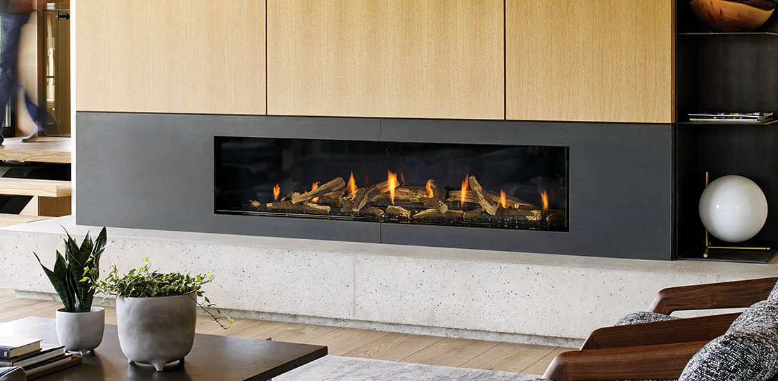 Enjoy year-round comfort with the Primo II linear gas fireplace and its trailblazing control for low or no heat.