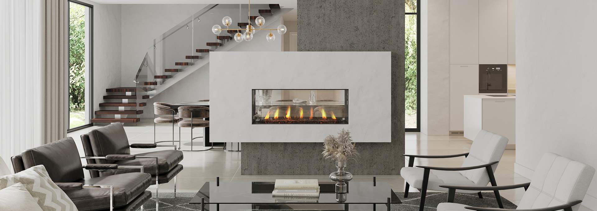 The Seattle See-Through 50” model is a stunning addition to our extremely popular City Series Lineup. Enjoy unmatched City Views from two rooms with our first see-through City Series designer gas fireplace. Featuring all the exceptional features of our entire City Series lineup, you can enjoy a frameless view of the fire (now from two sides!), finish direct to the edge of the fireplace with any material and hang TV’s or artwork without worry with Regency’s patented Cool Wall System.
