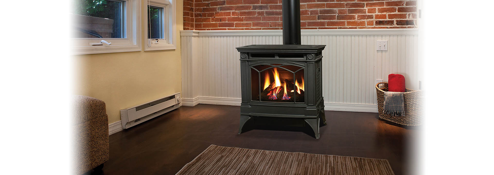 Style & Performance. The Hampton Medium Gas Stove's beautiful styling is matched only by its authentic fire. The gas flames have been carefully engineered to twist and flicker as real wood flames do – around the most realistic logs available anywhere today.