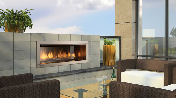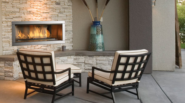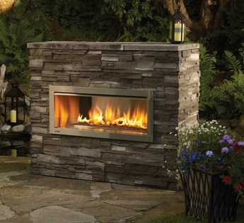 The success of the Regency Horizon series can now be extended to outdoor living areas. All of the sophisticated, contemporary styling and quality workmanship is mirrored in this dramatic outdoor fireplace. This fireplace delivers beautiful wide angle flames amplified by a reflective stainless steel body with the choice of reflective crystals, volcanic stones or a ceramic drift wood log set. Quality, style and durable outdoor function make this fireplace a perfect outdoor option.
