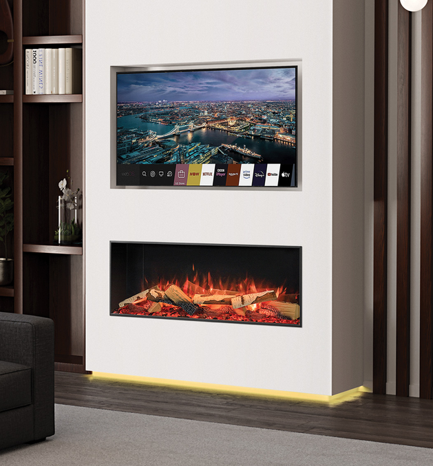 This 53″ single-sided fireplace is suitable for a broad range of settings from the lounge to the bedroom. Featuring Skope’s powerful Chromalight Immersive LED technology, assortment of feature fuel effects, and advanced remote you can control the look from anywhere in the room.