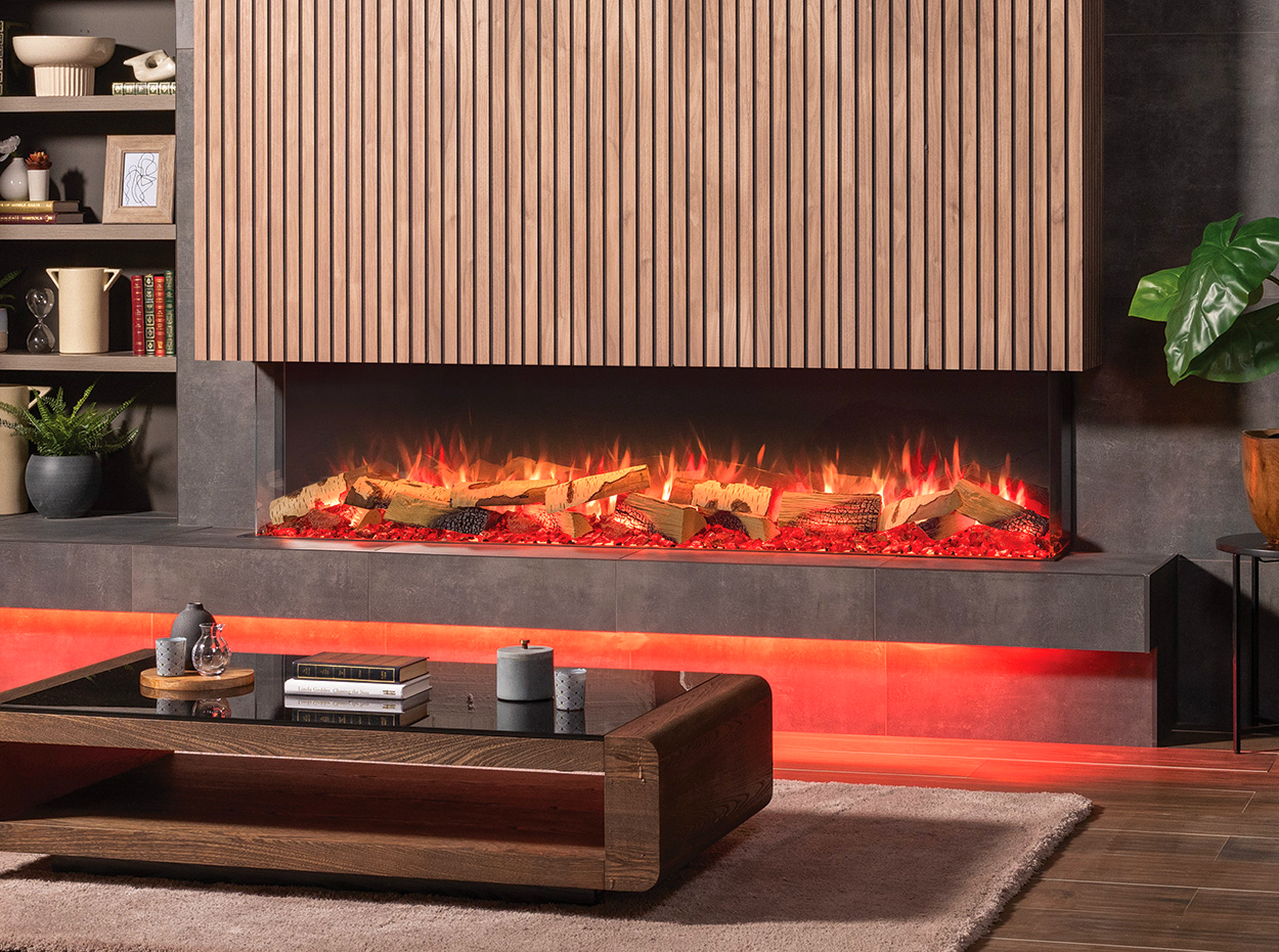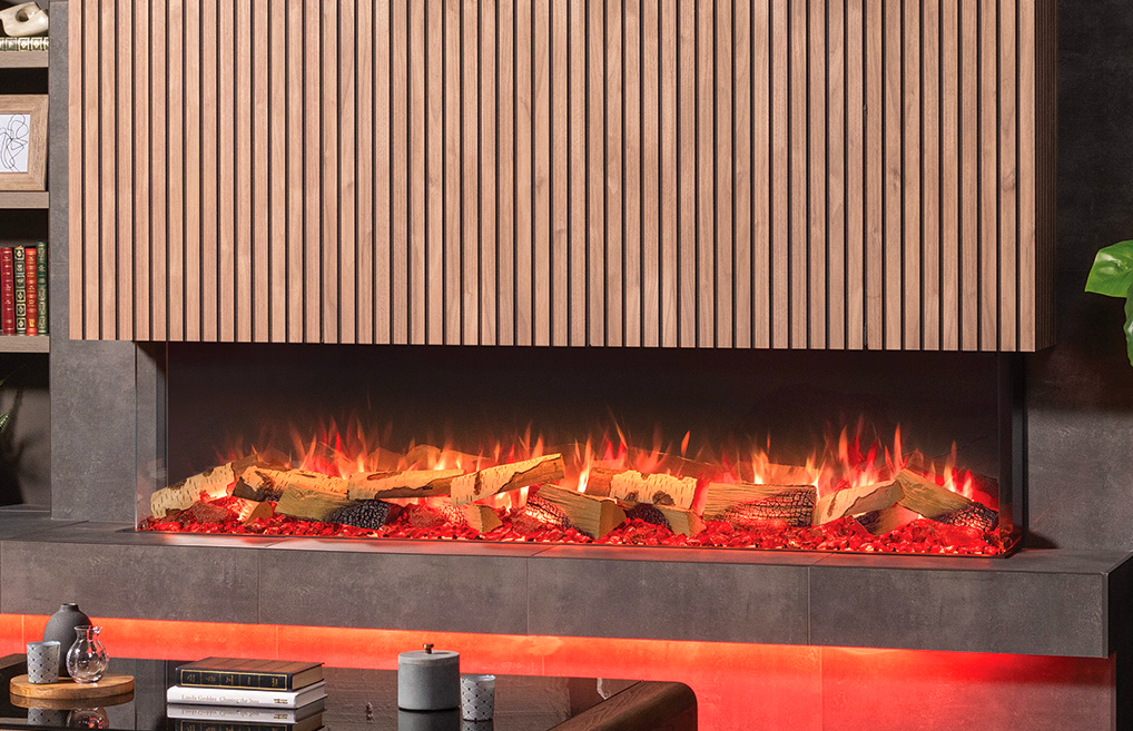 Skope Electric Fireplaces are premium, built-in fireplace products that contain 3-dimensional fire beds; creating an unmatched layered and multi-flame effect. Designed to offer a multi-sided view of the fire, the Skope 3-sided model can be installed as a three-sided or left and right corner electric fireplace.