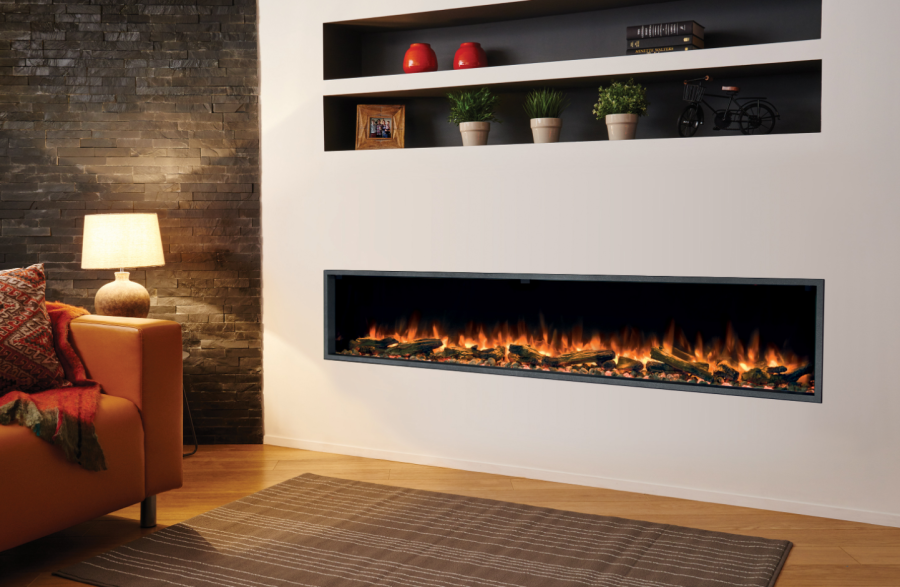 - Choice of fuel effects what can be mixed and matched including logs, grey & clear pebbles and crystal ice-effect