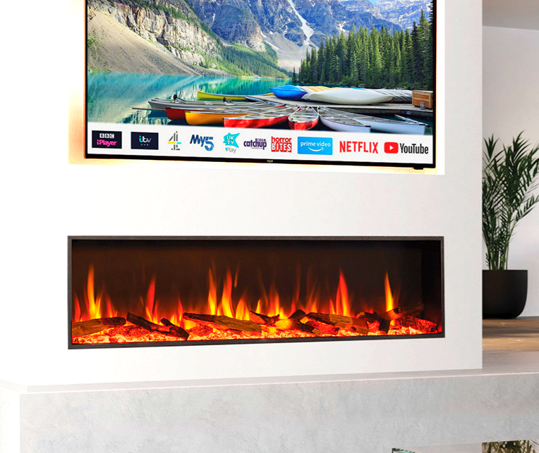 This 53″ single-sided fireplace is suitable for a broad range of settings from the lounge to the bedroom. Featuring Skope’s powerful Chromalight Immersive LED technology, assortment of feature fuel effects, and advanced remote you can control the look from anywhere in the room.