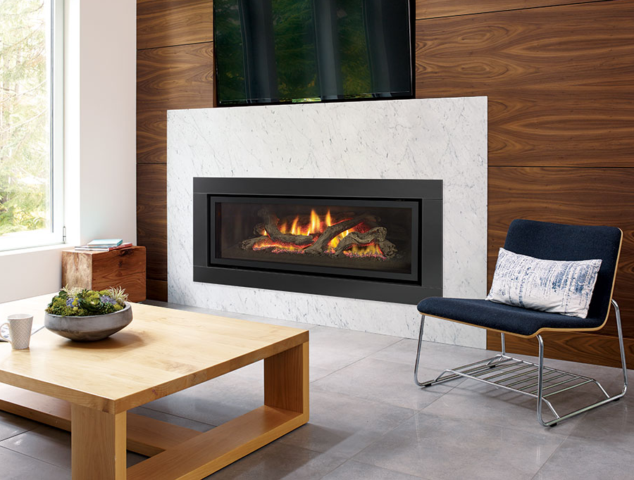 The Regency Ultimate linear Gas Fireplace showcases the best in class flame and log package. Perfect for modern spaces and open concept living areas, clean burning heat is distributed throughout the home. Colder climates will benefit from the combination of intense radiant heat and extensive convective heat delivered by the built in blower. The black enamel reflective panels further accentuate the fire to create the perfect ambiance.