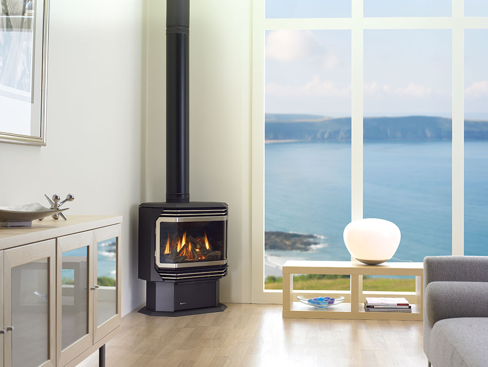 The clean, modern lines of the Ultimate Gas stove wrap around the realistic gas fire available today. This fire can be provides 40,000 BTU of high efficiency heat for large living areas but can be turned down to enjoy the fire view with less warmth. Warm up your kitchen, bedroom or den as you lower heating bills with the efficient and versatile U39 direct vent gas stove.