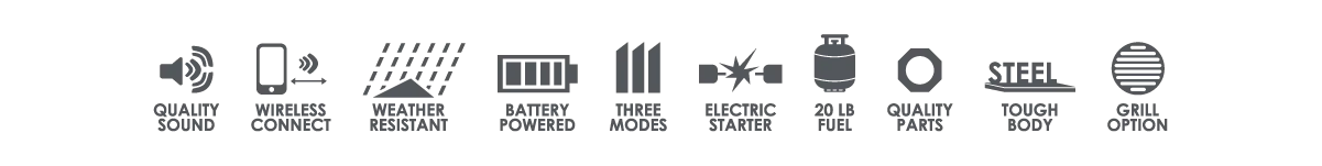With the first-ever built-in sound system this portable propane grill becomes the life of the party. Equipped with marine-grade speakers that can handle the elements and a custom made rechargeable lithium-ion battery, it’s the perfect entertainment hub for sporting events, tailgating, camping, RVing or any cookout.