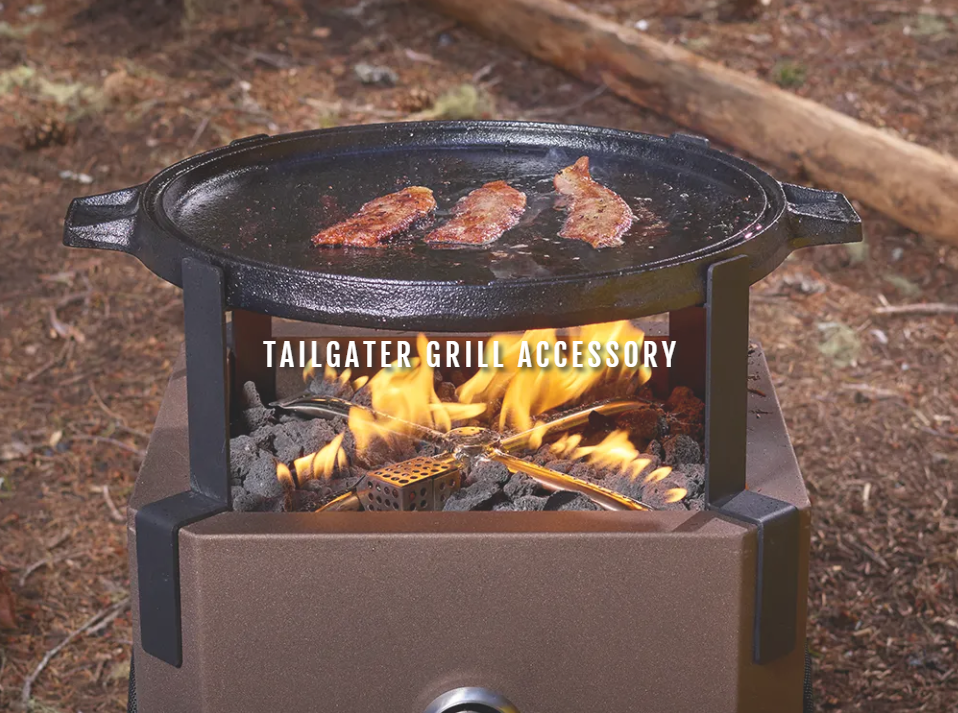 This grill accessory turns your Tailgater fire pit into a grill! Cast-iron, double sided grill/griddle perfect for cooking anything from bacon to pancakes!